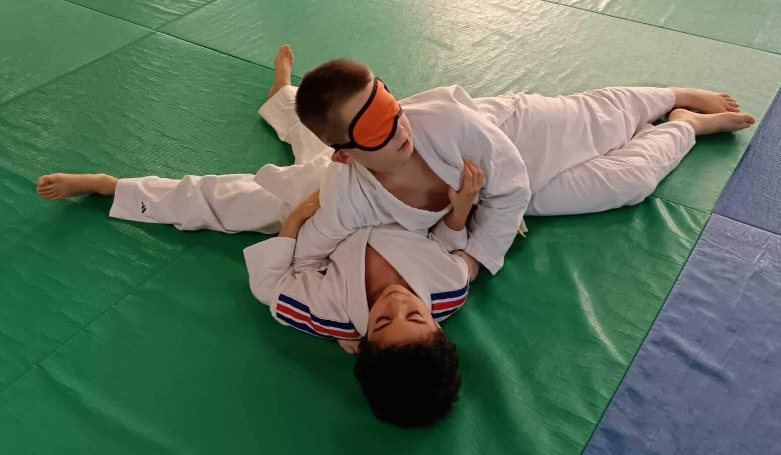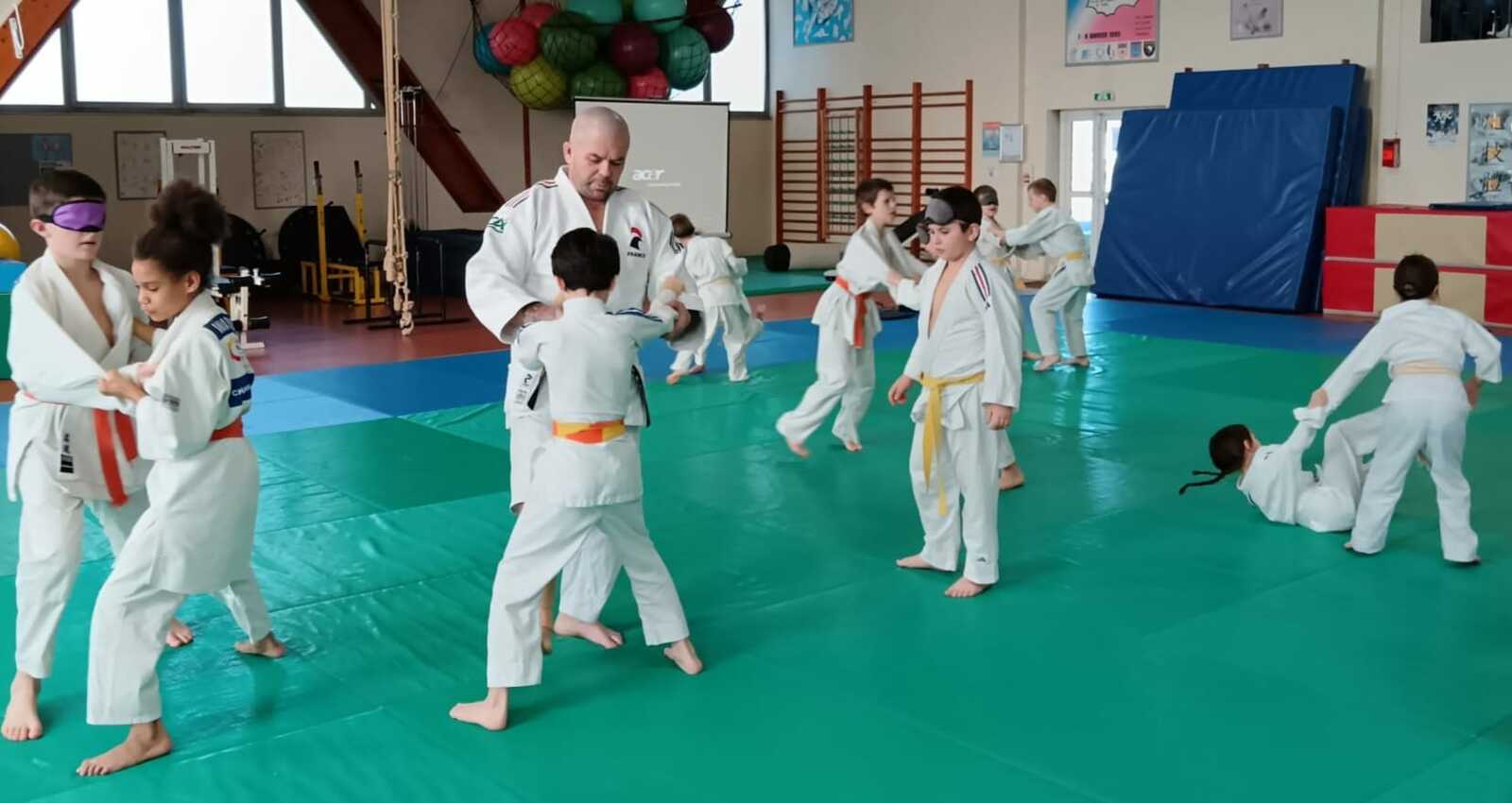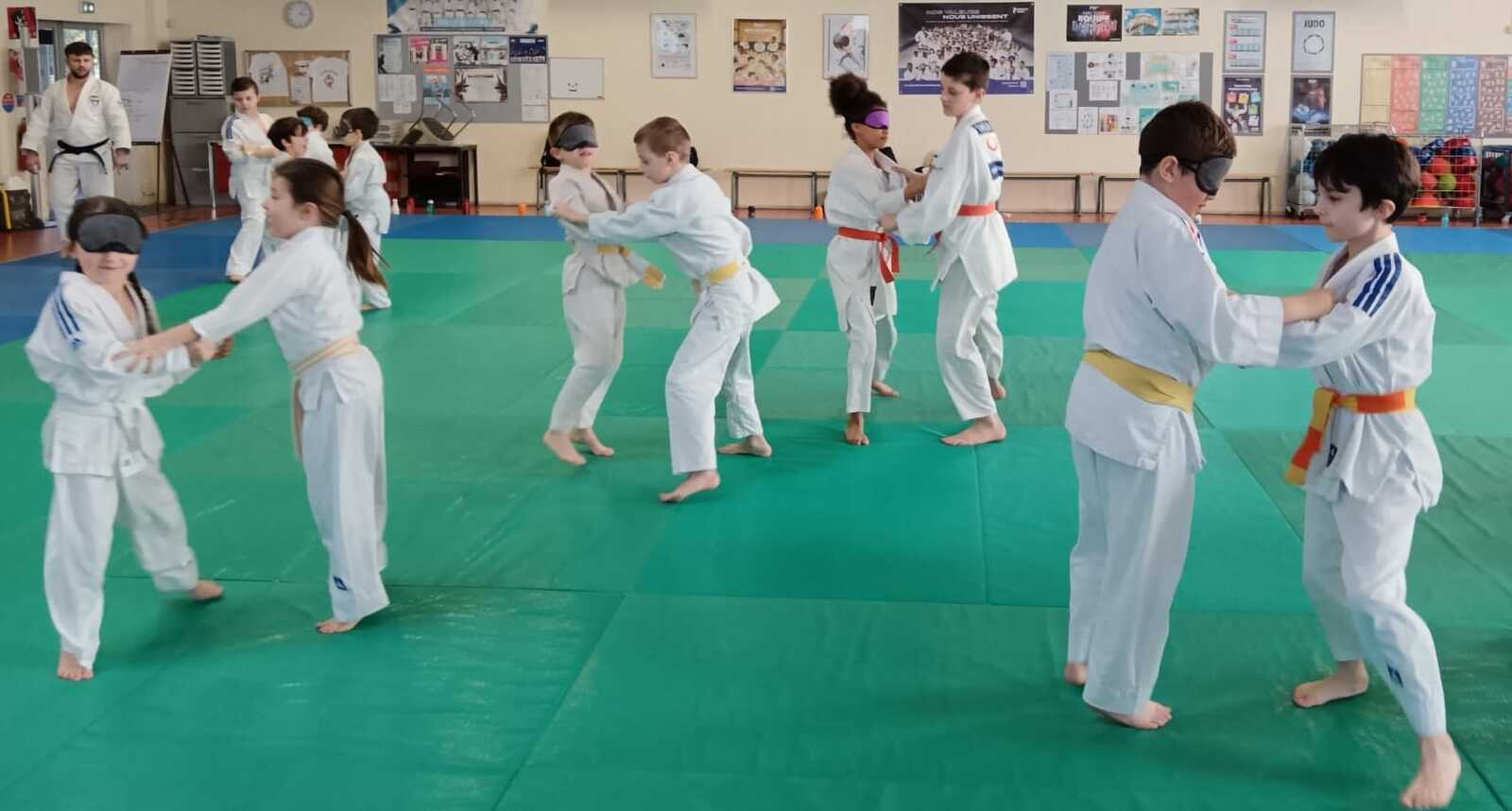 Une trentaine d’enfants âgés de 6 à 12 ans ont ainsi pu découvrir le judo sous un nouvel angle en pratiquant divers exercices en situation de handicap visuel. Encadrés par Anthony et Chrystal et sous la direction de Sébastien, les jeunes judokas ont enfilé des bandeaux pour simuler la déficience visuelle et adapter leur pratique du judo sur le tatami. 👍