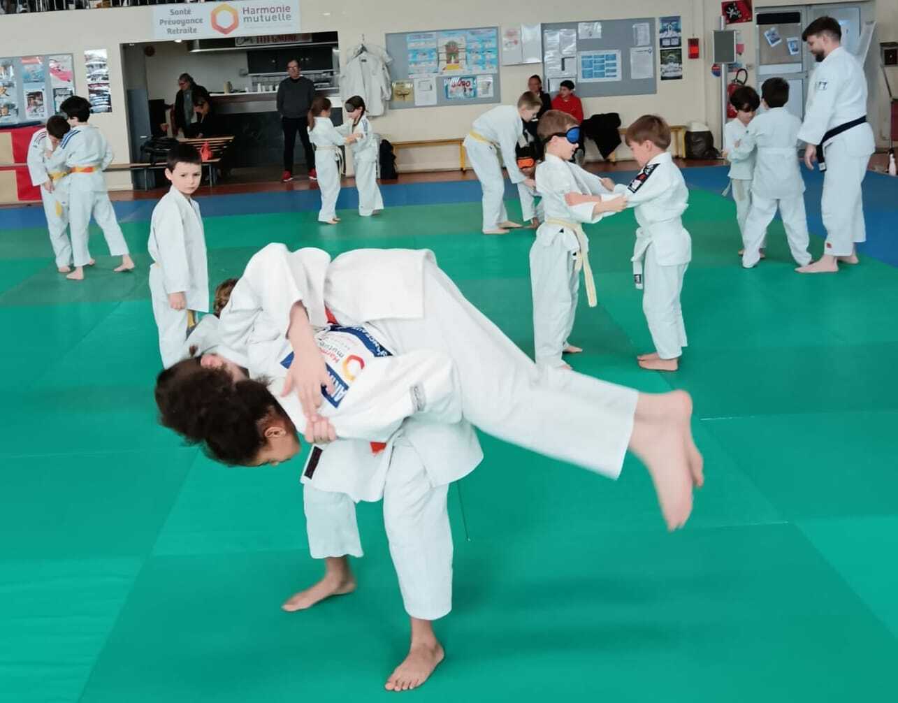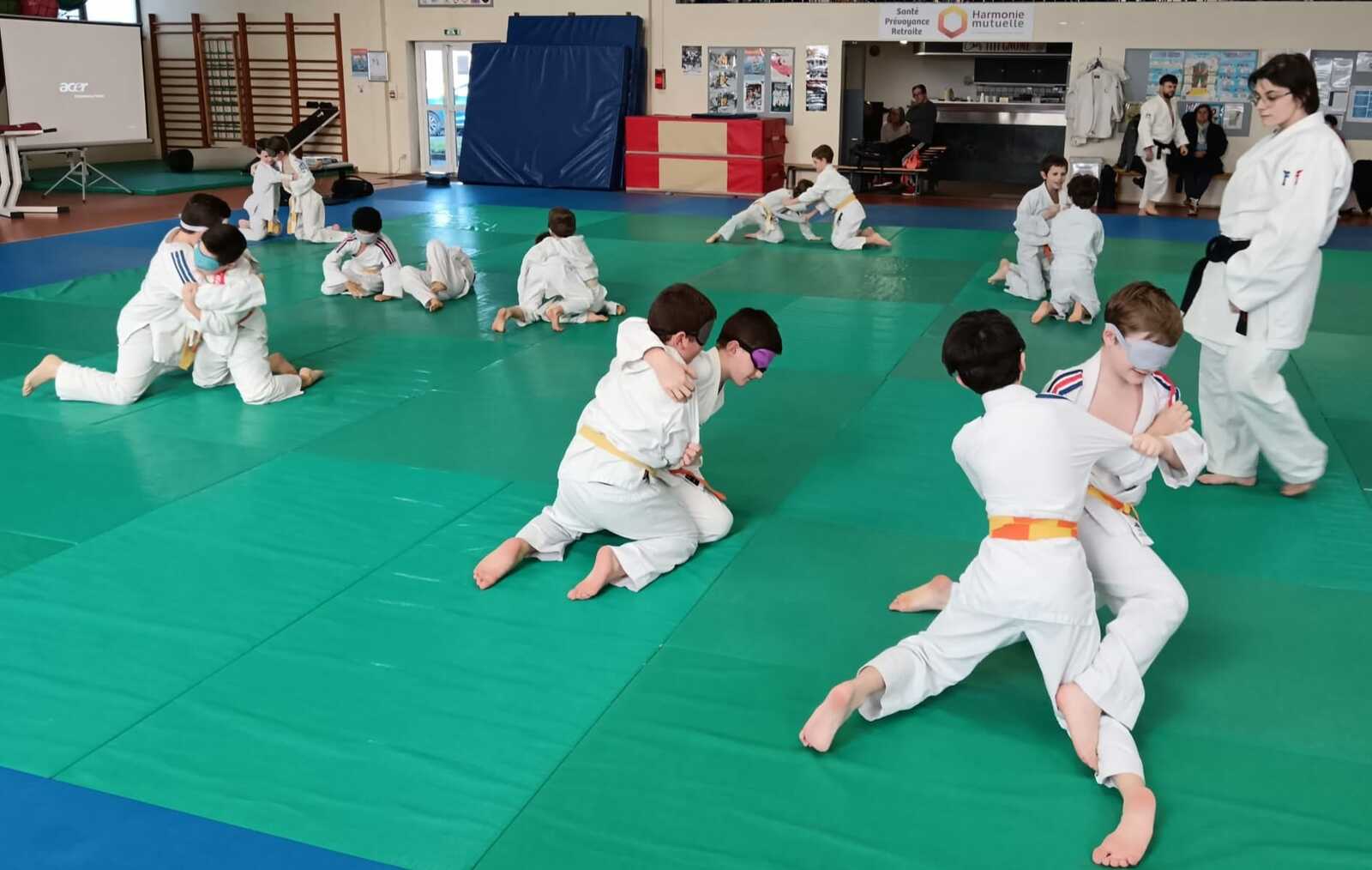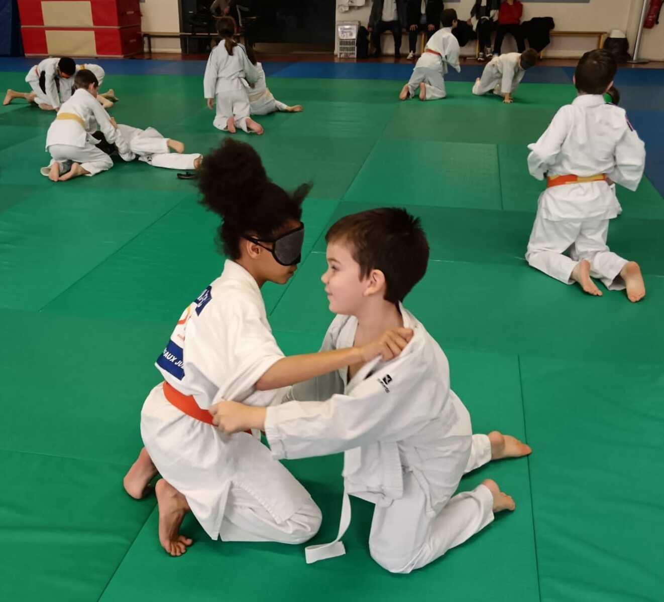Une trentaine d’enfants âgés de 6 à 12 ans ont ainsi pu découvrir le judo sous un nouvel angle en pratiquant divers exercices en situation de handicap visuel. Encadrés par Anthony et Chrystal et sous la direction de Sébastien, les jeunes judokas ont enfilé des bandeaux pour simuler la déficience visuelle et adapter leur pratique du judo sur le tatami. 👍