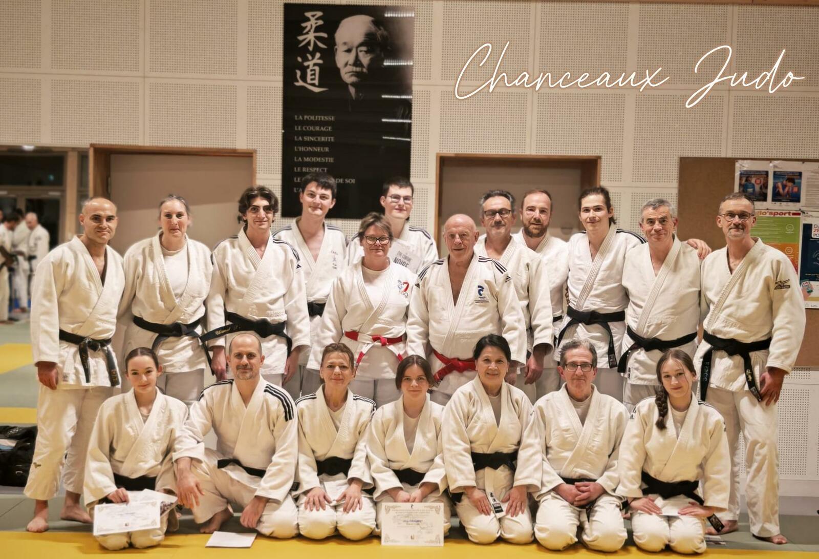 Notre club a été très largement représenté avec la plus grande délégation de ceintures noires à peine usées. Ainsi, sous l'oeil admiratif et bienveillant de leurs ainés, venus nombreux pour les soutenir, Mélanie Boulesteix, Chloé Chaumet, Clément Delaneau, Antoine Mure, Nina Pierre, Yann Perrocheau, Lucas Sorel et Olivier Sorel ont réçu leur diplôme. Beaucoup de reconnaissance et de gratitude de la part des entrants dans la grande famille des ceintures noires envers celle qui leur a permis d'arriver ici, en partageant son savoir et son expertise, toujours avec rigueur et exigeance, détermination et bienveillance : leur sensei Corine Basmaison.